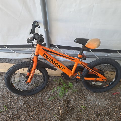 Barnesykkel 16" rød med kurv og bagasjebrett