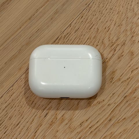 Caset og airpodsa er rengjort og tilbakestilt, klar for ny eier.