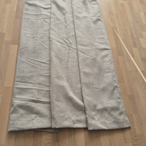 Gardiner i størrelse 140x260 cm. De er sydd noe opp, og er litt ulike lengde. Se bilde.