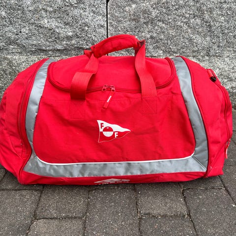Pro Touch sportsbag i blå og hvit farge. Bagen har stort hovedrom med glidelåsåpning og bærehåndtak på toppen. Egnet til trening, idrett og reiser, med plass til klær, sko og utstyr.