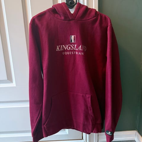 Kingsland Equestrian hettegenser i marineblå farge. Genseren har hette og stor «kengurulomme» foran. Rett passform og ribbekanter nederst og ved ermene. Passer til hverdagsbruk og ridning.