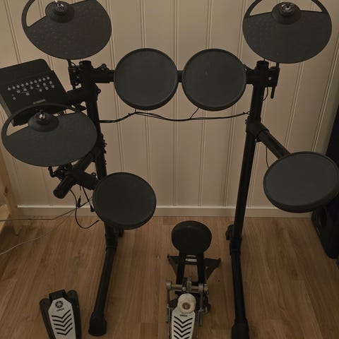 Komplett Gear4music DD200X elektronisk trommesett. Meshpads for mer realistisk følelse. Kontrollmodul med display og betjeningsknapper. Egnet for øving med hodetelefoner eller tilkobling til forsterker/lydanlegg via utgang på modulen. Kontrollmodulen gir tilgang til ulike trommelyder og innstillinger. Passer for bruk hjemme eller i øvingsrom. Ypperlig nybegynnersett til god pris. Selges på grunn av oppgradering. Bilder fra nett. Settet er demontert. NB: Settet må sendes i to separate pakker x opptil 10kg.