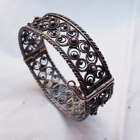 Filigran armbånd i sølv 835 (eldre sølvlegering) 19 cm. Pent arbeid. Vintage.