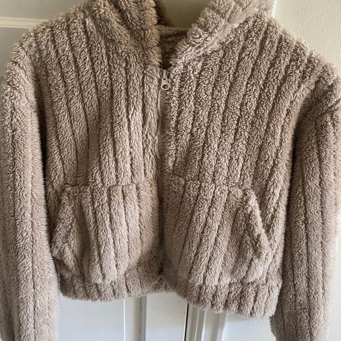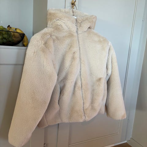 Nydelig jakke i beige fuskepels i str 134/140. Jakken er helt ubrukt og har lappen på.