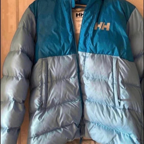 Flott dunjakke fra Helly Hansen, str. 16 år. Lite brukt. Knappe bruksmerker. Brukt et par ganger årlig siden kjøp.