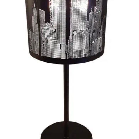 Ichi bordlampe med mønster og svart fløyelsskjerm. 2 meter svart tekstilkledd ledning med bryter på ledningen og stikkontakt. 1xE27, maks 60W.