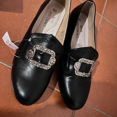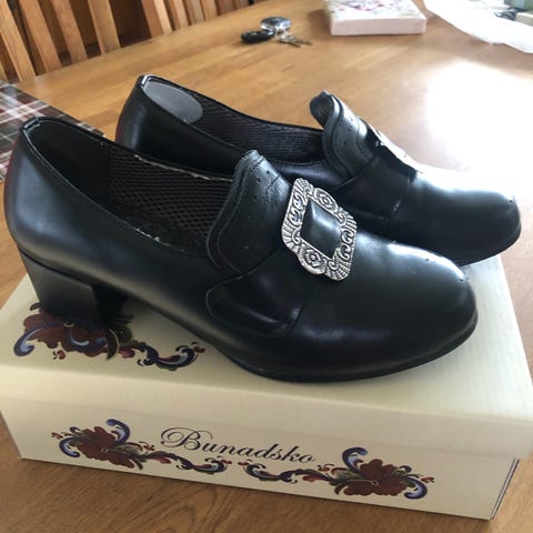 Ubrukte bunadssko i str 41, merke Vinje. Skinn/stoff.