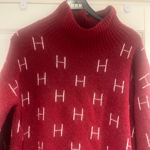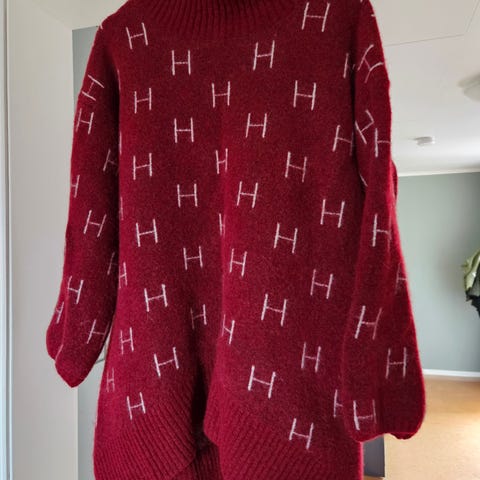 Fantastisk genser selges da den er for stor. Fargen er mer mørk vinrød enn den som kommer frem på bildene.