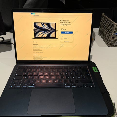 Selger med trofaste og veldig gode MacBook Air M3 etter overgang til MacBook pro M5. Maskinen er pent brukt og velholdt - et par små ubetydelige bruksmerker i chassis (se bilder) - skjermen er helt clean og fri for noe som helst merker . Medfølgende original eske, lader og gjenstående 1 år med uhells- og tyveriforsikring fra Power (gyldig til 25.03.2027)