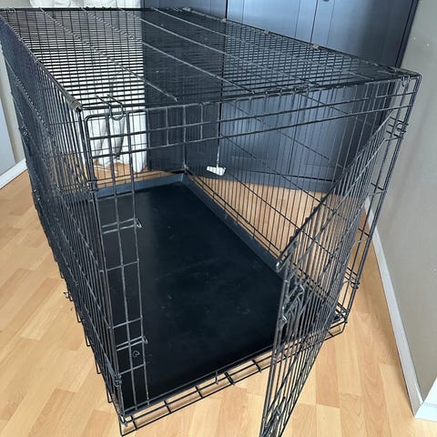 Hundebur XXL L124xB74xH83, svart metall m/plastbunn
