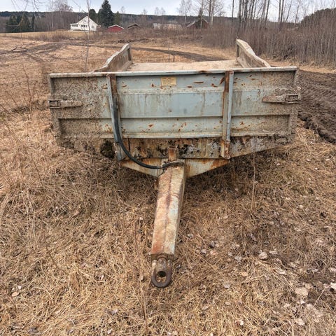 Registrert tipphenger fra Br. Olsen selges. Nyttelast 3tonn. Traktorhenger til mindre traktorer som sikkert passer fint for et lite småbruk. Må ha nye sidelemmer, men bunnen ser fin ut og det er stålplatebunn. Nye lys må også påregnes.