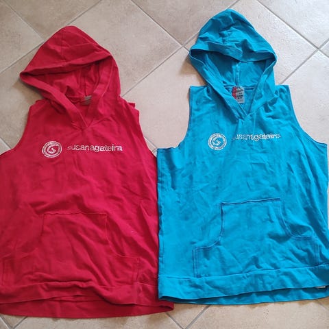 Beige toppen er ubrukt, blå er lite brukt treningstopp.