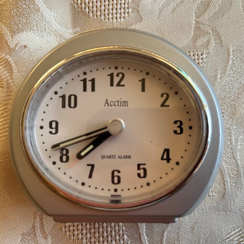 Den tikker og går, men er usikker på om den følger tiden helt. Slår hver time. Det ligger en opptrekksnøkkel inne sammen med urkassen.