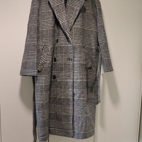 Vakker ullkåpe frå Premiere Bla Bla str L. Lengde: 89 cm frå skuldrene og ned. Kåpa er berre brukt ei kort stund ein gong og framstår som ny. Fin som overgangskåpe mellom vinter og vår eller som vinterkåpe med litt varmare tøy under.