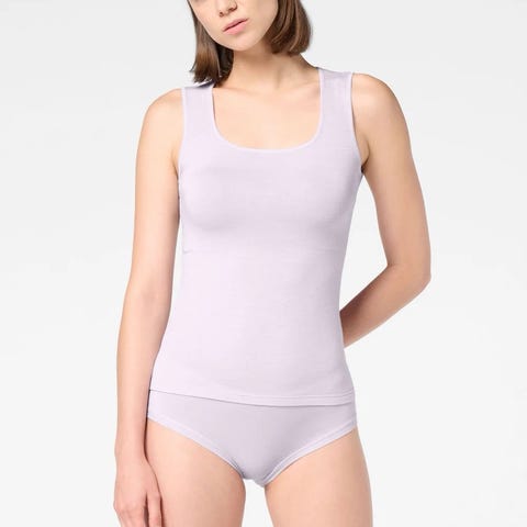 Helt ny og ubrukt tanktop fra Panos Emporio i størrelse S, fortsatt med tags. Fargen er “Pink Dawn” (lys rosa/violet).
