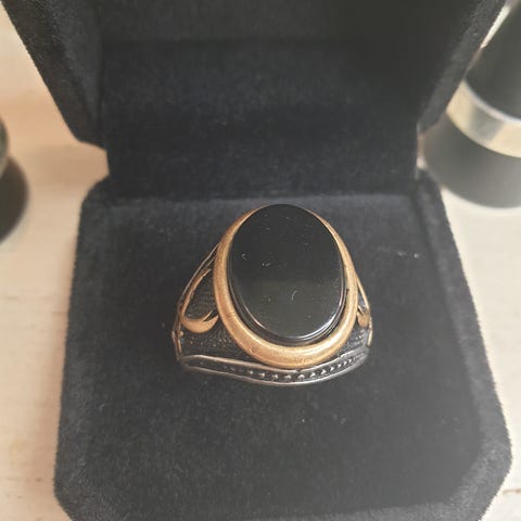 • Stein: svart stein (trolig onyx)