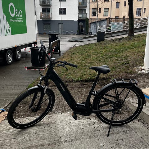 Kommer utstyrt med sykkelkurv og bagkurv.