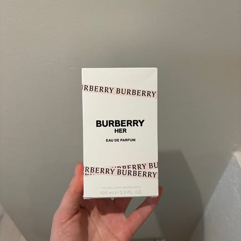 Burberry Her Blossom Eau de Toilette i rosa flakong, kun prøvd tre/fire spray fått til jul, og den er oppbevart mørkt og kjølig.