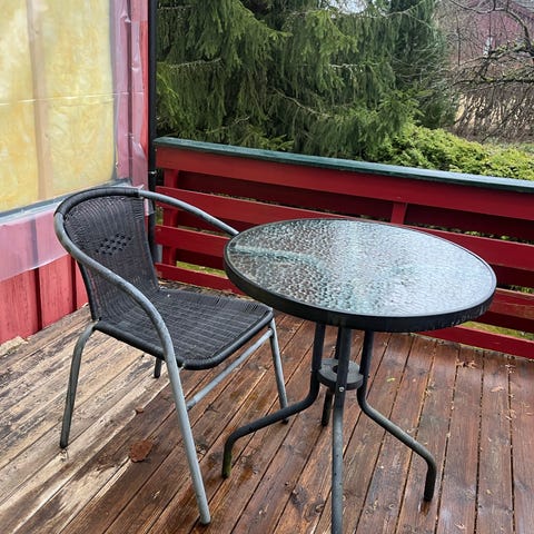 Bordet er helt og fint, men stått ute lenge. Trenger en god vask. Må hentes.