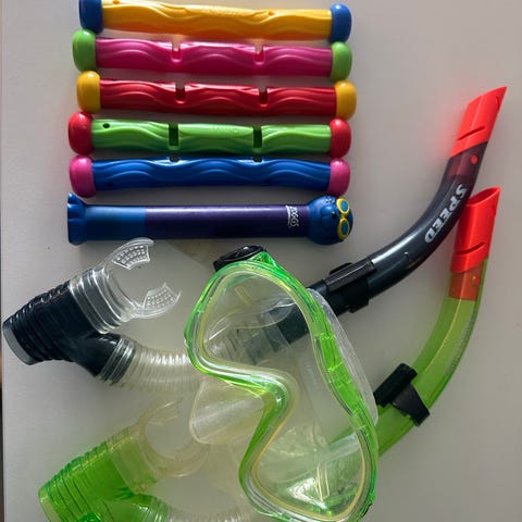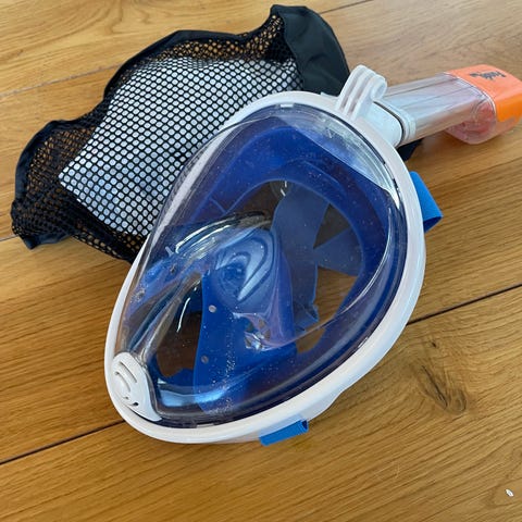 Full-face snorkle-maske fra Watery. Pent og lite brukt ved en utenlandsreise. Fortsatt beskyttelsesfilm på glasset. Har én igjen.