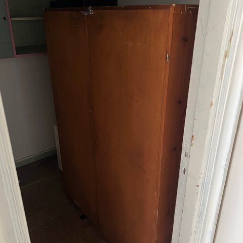Pent vintage treskap gis bort mot henting. Trenger et strøk maling, og nøkkelen til skapet er borte, men eller er det i god stand.