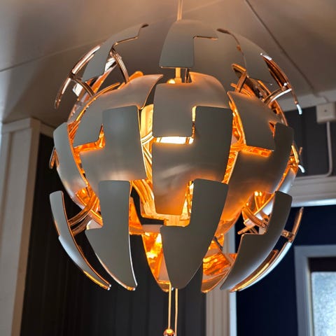 Lampen er laget av plast. Er dessverre 2 skader i plasten(Dette vises på de 4 siste bildene) Skadene vises ikke godt, så kan fint brukes som den er.