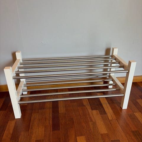 Skohylla / Klesstativ med benk og speil.