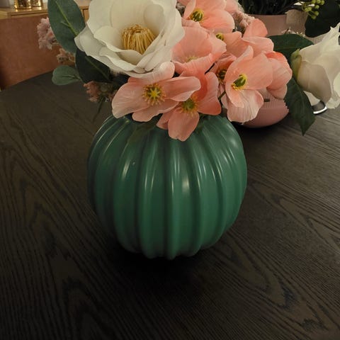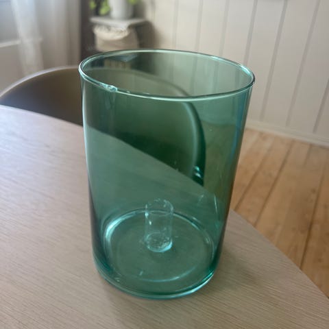 Pent brukt vase med grønn sløyfe. Ser ingen skader.