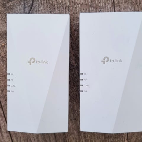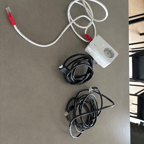 Sett med to powerline-adaptere for kablet nettverk via strømnettet. Hver adapter har én Ethernet-port for tilkobling av for eksempel PC, ruter eller TV. Statuslys på front viser tilkoblings- og aktivitetsstatus. Egnet for bruk der det er behov for kablet nettverk i rom uten direkte nettverksuttak, ved å utnytte eksisterende strømuttak i boligen.
