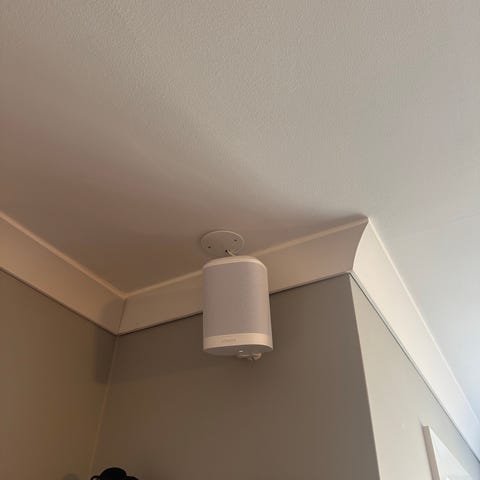 Sonos høyttaler med tilhørende veggfeste.