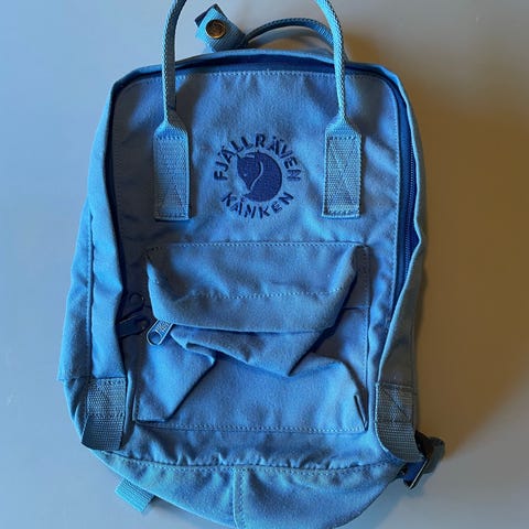 Fjällräven mini Kånken ryggsekk i stoff for unisex bruk. Klassisk modell med bærehåndtak på toppen og justerbare skulderstropper. Sekken har hovedrom med glidelås, frontlomme med glidelås og sidelommer og egen lomme på innsiden med sitteunderlag.
