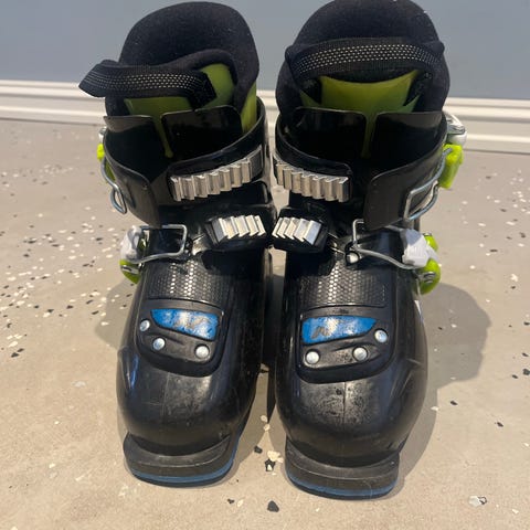 Pent brukte Nordica Pcarv 2 slalomsko barn 200–215 mm. Støvlene er i hovedsak svarte med detaljer i grønt, blått og hvitt. Sålelengden er merket 255 mm, og størrelsesområdet er 200–215 mm. Modellen har to spenner foran for justering og god tilpasning til foten, samt polstret innersko for økt komfort. Egner seg til alpint bruk for barn.