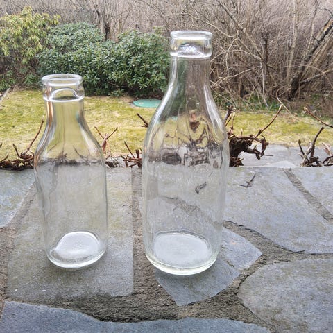 Kan brukes som små vaser til blomster, dekor på bord, eller til oppbevaring av olje, eddik eller lignende. Tre av flaskene har kork.