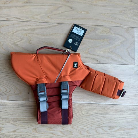 Non-stop dogwear flyte redningsvest for hund i grønn/turkis farge med grå og rosa detaljer. Vesten er merket for hunder mellom 10–15 kg. Den har justerbare stropper under brystet og rundt magen, samt klips foran for sikker lukking. På ryggen er det solid bærehåndtak og refleksdetaljer for bedre synlighet. Passer til bruk ved bading, båtturer og andre aktiviteter ved vann der hunden trenger ekstra flytestøtte.