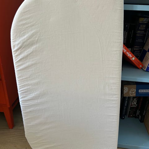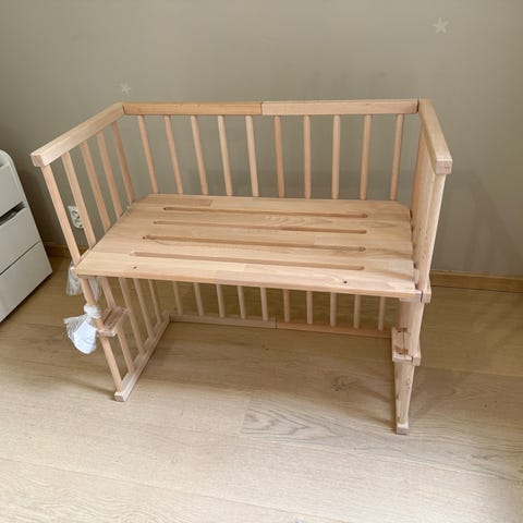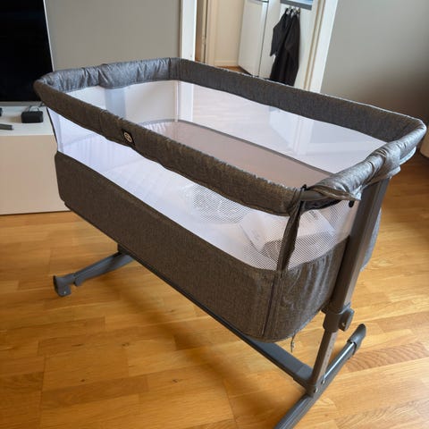 Ebebek bedside crib babyseng med madrass og pute. Babysengen er utformet som en myk og polstret seng som kan plasseres ved siden av foreldrenes seng. Tekstilet har mønster i gule og grå toner med skyer og måner. Egnet for spedbarn i den første perioden, avhengig av barnets størrelse og vekt. Kan brukes som ekstra seng, reiseseng eller trygg liggeplass på gulv eller sofa under tilsyn. Materiale er 100% cotton.