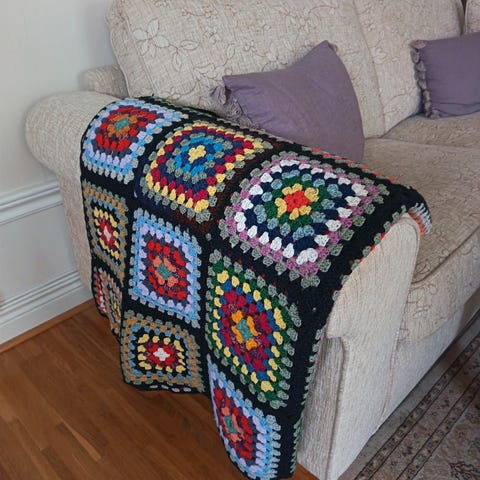 Flott, stort nyheklet teppe/pledd i oldermors-ruter