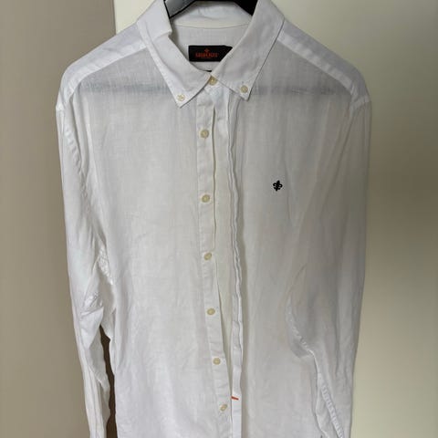 Ubrukt stripete lin-skjorte fra Morris. Størrelse L. Nypris 1299.