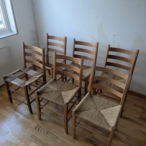 6 Hvite Slaake / Slåke originale Jærstoler selges