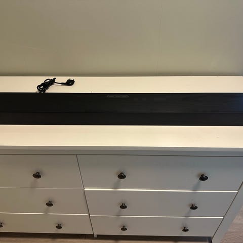Samsung HW-Q995F/XE lydplanke med trådløs subwoofer og bakhøyttalere. Systemet er utviklet for flerkanals hjemmekino med støtte for moderne surroundformater. Lydplanken kobles til TV eller andre kilder via digitale tilkoblinger og gir et oppsett som egner seg til film, TV og musikk i stue eller mediarom.