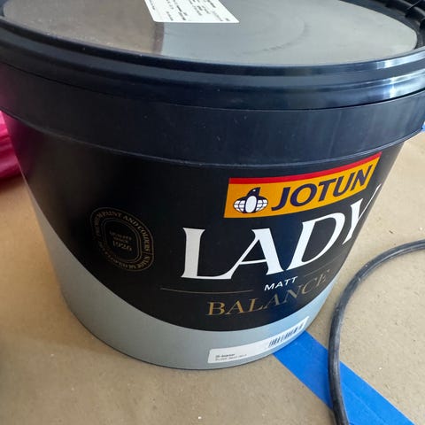 Blandet, men ubrukt maling «Pale Linden» fra Jotun Lady Balance. 2,7 liter. Kjøpt for mye så har blitt stående. Har kun vært lagret innendørs i oppvarmet rom. Kjøpt og blandet 19.02.2026.