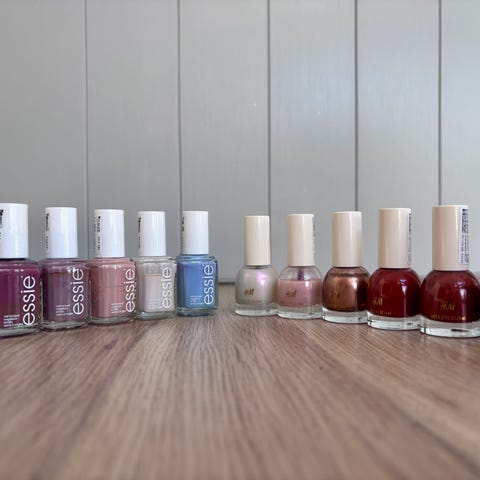 Noen er uåpnet, noen er brukt litt, men er nesten fulle. Herome nail hardener er halvfull.