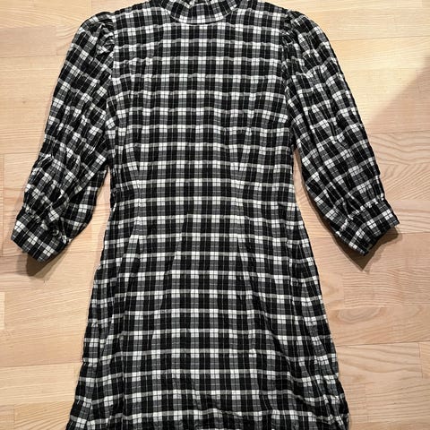 Ganni kjole for dame i størrelse S/M. Kjolen er flerfarget med svart og grønn, med rutemønster. Passer som både hverdagskjole eller til penere anledninger.