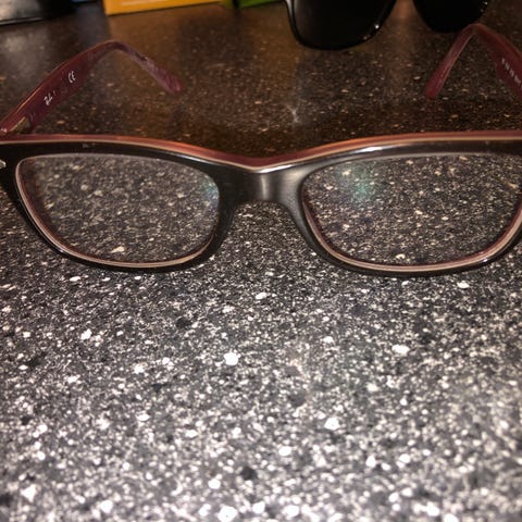 Ray-Ban briller unisex med rektangulær innfatning. Fronten er svart, mens stengene er lilla. Innfatningen passer til både kvinner og menn. Brillene har klare glass som kan byttes ut med styrkeglass hos optiker etter behov. Egner seg som hverdagsbriller eller som reservebriller.