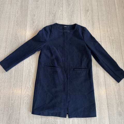 Har noe nupper i stoffet, og litt slitasje i hanken inni jakken. Men ser ellers fin ut.