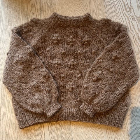 Nydelig, myk genser i størrelse s/m. Kjøpt brukt er på finn, og ble da fortalt at dette er genseren som blir brukt på illustrasjonsbildet til strikkeoppskriften! Strikket i en tråd merino og en tråd mohair. Selges da jeg bare må innse at jeg virkelig ikke kler fargen 🥲
