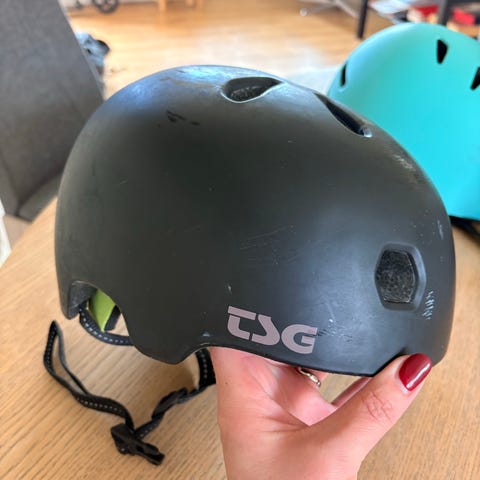 2 stk TSG Recon i sort matt, størrelse S/M (54–56 cm). Klassisk skatedesign som passer like godt til sykkel, sparkesykkel og skateboard - pent brukt - 100,- per stk