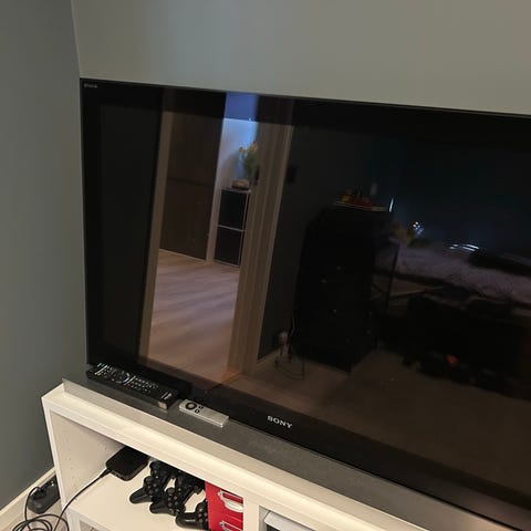 Sony TV. Veggmontert flatskjerm-TV egnet for vanlig TV-bruk og tilkobling av eksterne enheter via tilgjengelige innganger (for eksempel dekoder, spillkonsoll eller mediespiller). Skjermen har rektangulært format og sort ramme. Passer til bruk i stue, soverom eller andre oppholdsrom der det er behov for en enkel TV-løsning.