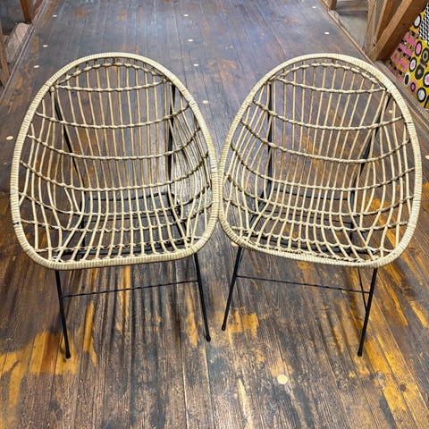 Kurvstol i rotting i brun farge. Stolen har høy rygg og buede armlener i tre. Egnet som lenestol på balkong, terrasse eller inne i stue eller vinterhage. Sitteputen kan følge med.