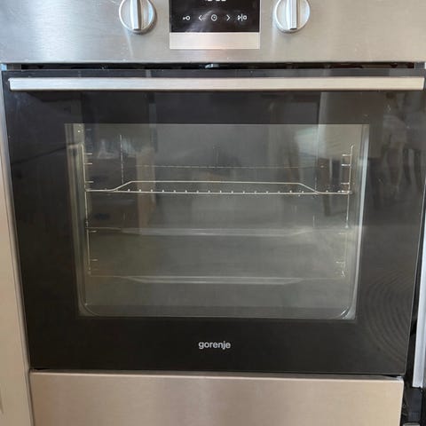 Whirlpool innebygd stekeovn med grillfunksjon, varmluft, pyrolyses osv i rustfritt stål. Front i glass og stål med tre betjeningsknapper og digitalt display for innstilling av tid og funksjoner. Ovnen er beregnet for integrering i kjøkkeninnredning. Grillfunksjonen kan brukes til gratinering og steking av mat. Egen pizza funksjon. Ovnen er brukt av voksent par. Leveres med bruks- og vedlikeholdsveiledning som viser tilgjengelige programmer og innstillinger.