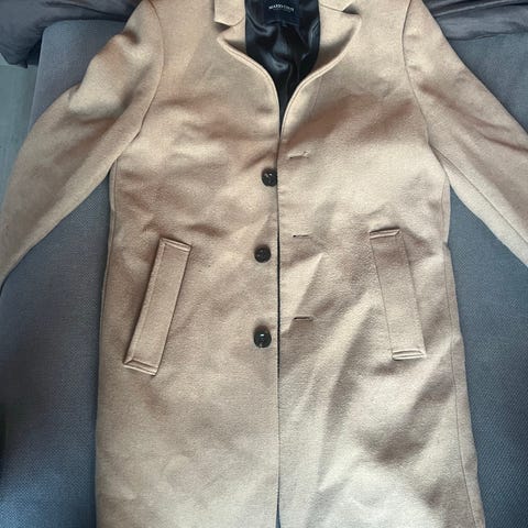 Selected ullkåpe for herre i størrelse XL. Kåpen er grå og laget i ullmateriale. Klassisk modell med krage og knappelukking i front. Sidelommer foran og glatt fôr på innsiden for økt komfort. Passer som ytterplagg i kjøligere vær og kan brukes både til hverdags og mer formelle anledninger.